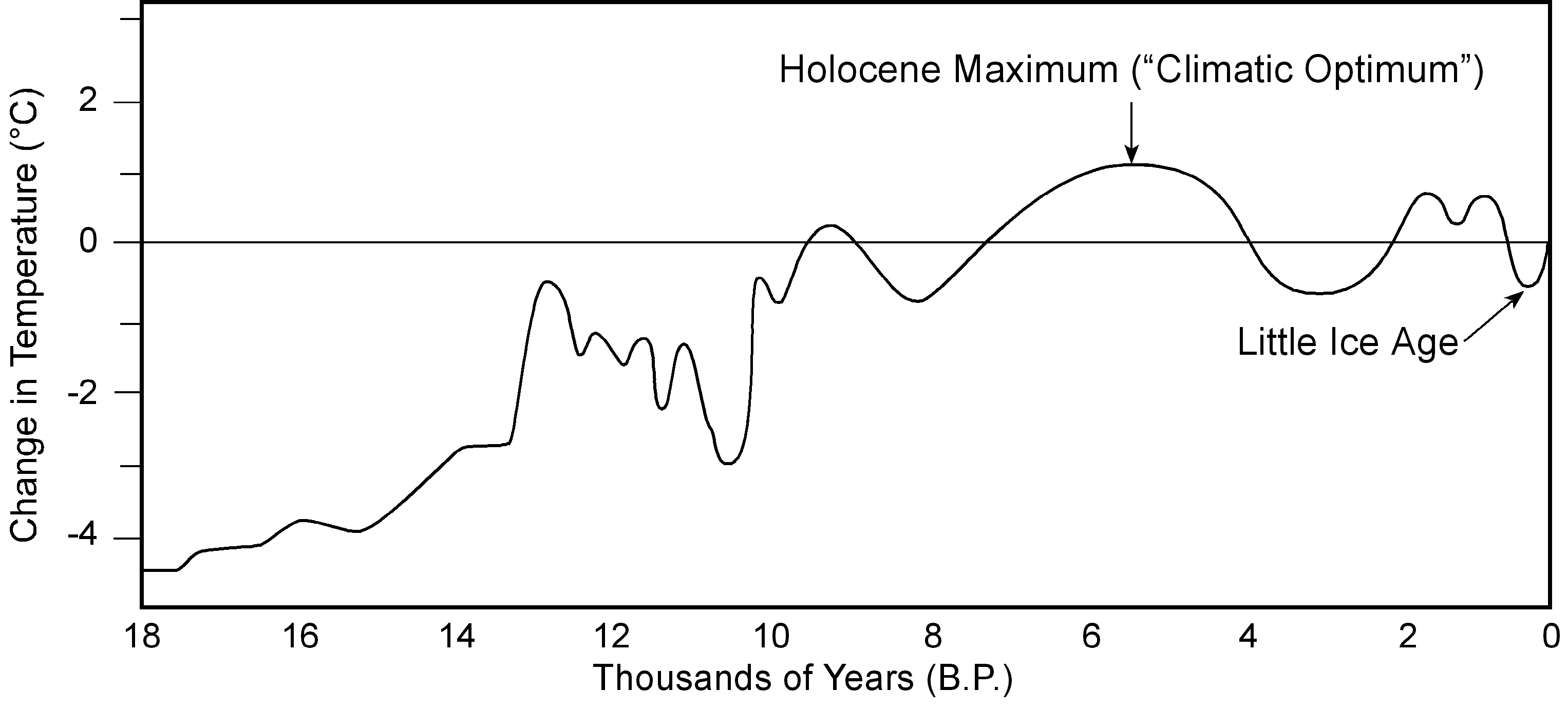 Global mean temperatures 18,000 years ago to present. [Source: J.A.Eddy, OIES, and R. S. Bradley, University of Massachusets, Earthquest, Spring 1991]