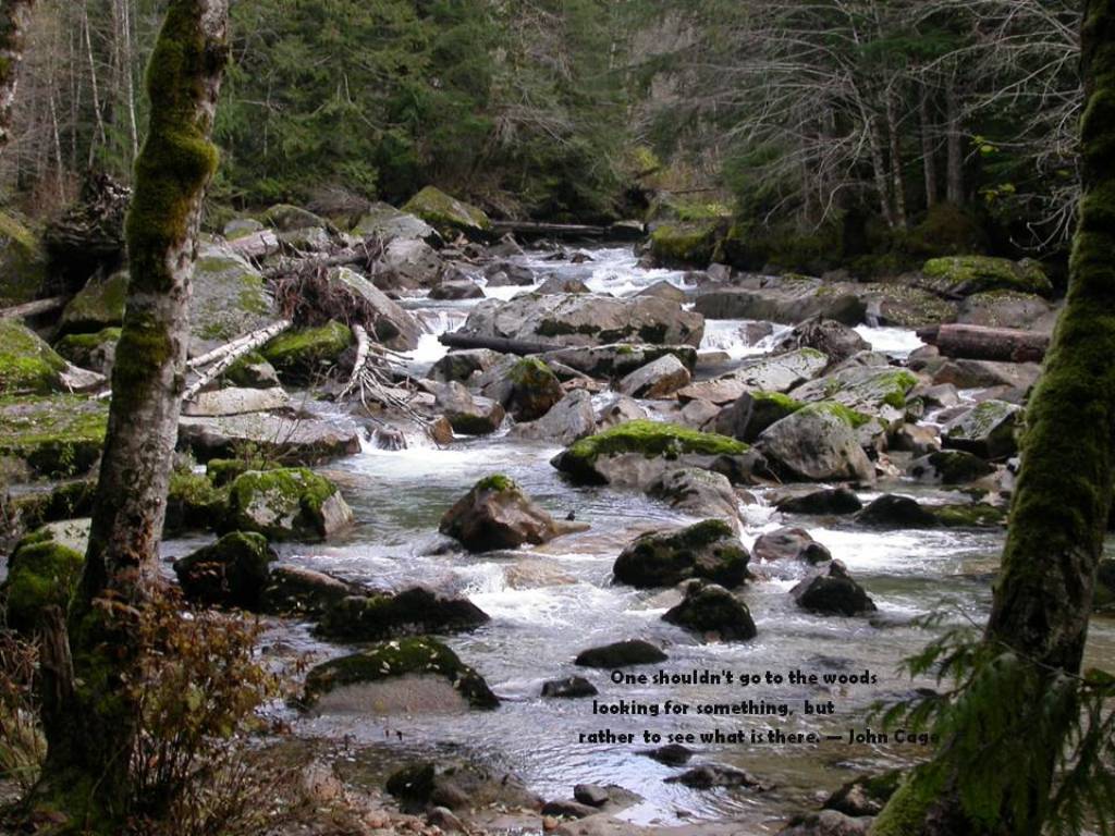 One shouldn't go to the woods looking for something, but rather to see what is there. – John Cage