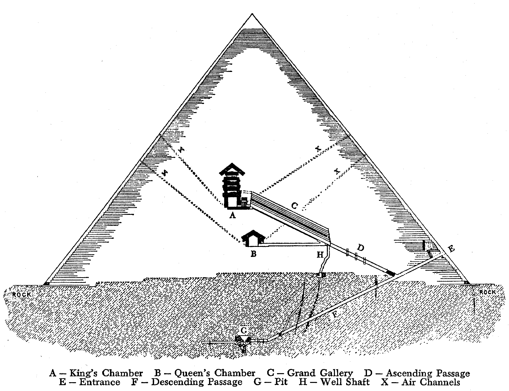 From the ground level, looking toward the apex which seems to penetrate the sky, we see a cascade of stones, row upon row, and little else. But if we stand at the fifteenth course, and focus upon the seventeenth where the entrance is now exposed, we see a double archway above the door resting upon a triangular stone in which is clearly marked the hieroglyph