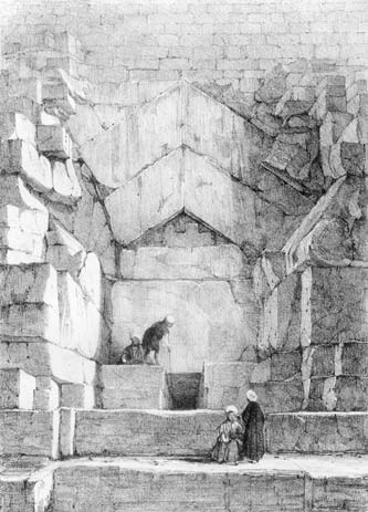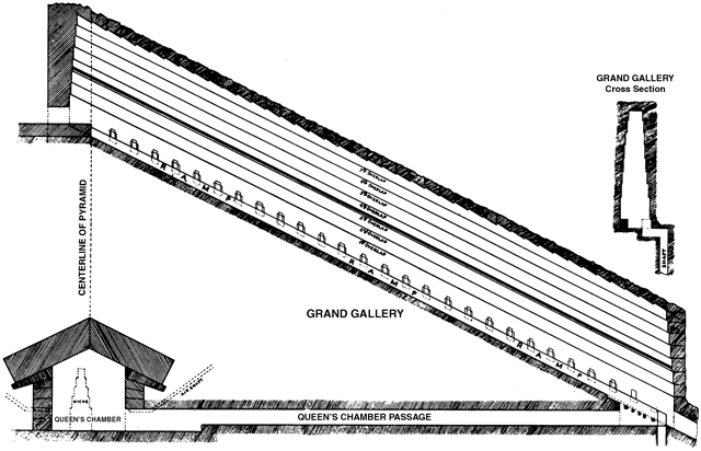 One of the greatest mysteries of this chamber has been the salt encrustation on the walls. It was up to one-half-inch thick in places, and Petrie took it into account when he made measurements of the chamber. The salt also was found along the Horizontal Passage and in the lower portion of the Grand Gallery. How did salt come to build up on the walls?