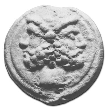 Janus seems to have had a rather colorful history, assuming a variety of roles with as many names attached to him. As Father of his people he became their guardian in practically every phase of their lives: of worship, shipping and commerce, the coining of money, and as Consivius (the Sower) the god of agriculture. But we know little of his antecedents as he has no counterpart in Greek mythology. The earliest known representations of a two-headed god are found on Etruscan medals, and it has been thought that Janus may originally have been a sky god and as such one of the "great celestial deities" who had rulership over the eastern sectors of the Etruscan "vault of heaven." Be that as it may, this ancient divinity must have undergone a series of transformations until, ascendant in Rome, we find him closely associated with Jupiter and Juno, and with Sol (the Sun) being invoked with Jupiter before all other gods.